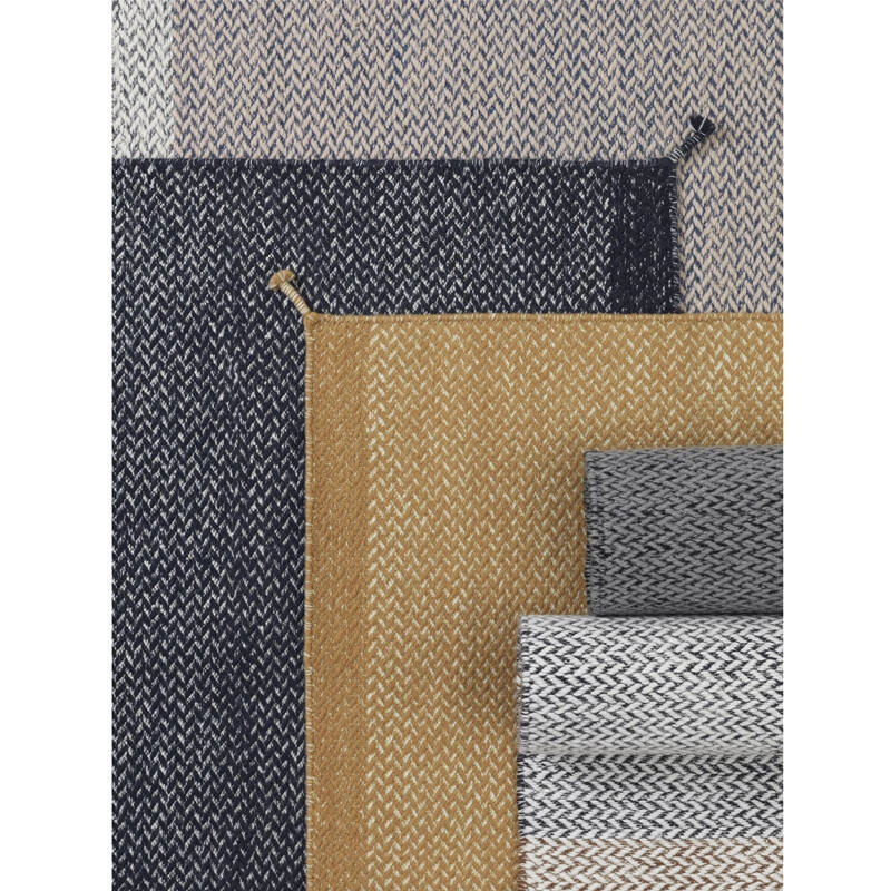 Créée par Margrethe Odgaard, Ply est une série de tapis tissés à la main en laine de Nouvelle Zélande. Décliné dans plusieurs teintes, le tapis Ply, édité par Muuto, est composé d'un motif de chevrons avec des fils de différentes couleurs créant un effet tridimensionnel. Les deux extrémités, réalisées dans une teinte différente, et les coins tressés donnent du caractère à ce tapis, parfait dans une chambre, et empreinte des traditions du tissage. Ainsi, Muuto présente le tapis Ply comme étant chaleureux et parfait pour décorer votre intérieur.