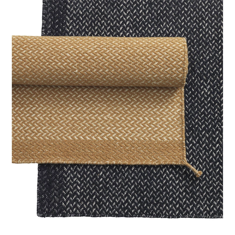 Créée par Margrethe Odgaard, Ply est une série de tapis tissés à la main en laine de Nouvelle Zélande. Décliné dans plusieurs teintes, le tapis Ply, édité par Muuto, est composé d'un motif de chevrons avec des fils de différentes couleurs créant un effet tridimensionnel. Les deux extrémités, réalisées dans une teinte différente, et les coins tressés donnent du caractère à ce tapis, parfait dans une chambre, et empreinte des traditions du tissage. Ainsi, Muuto présente le tapis Ply comme étant chaleureux et parfait pour décorer votre intérieur.