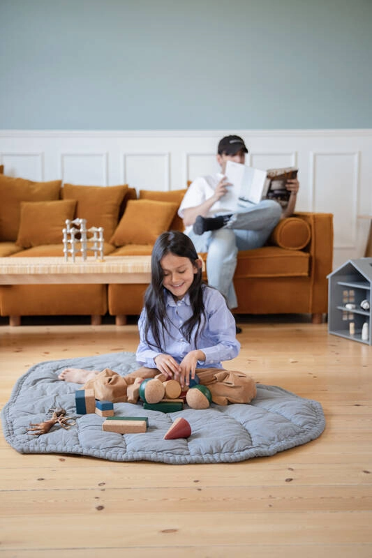 Le tapis Leaf de Nofred est le partenaire de jeu idéal des enfants : il se déplace facilement pour créer un espace doux et confortable dans n’importe quelle pièce de la maison. Avec sa forme organique, sa composition en coton biologique et son rembourrage, Leaf convient aussi bien aux bébés, en tant que tapis d’éveil, qu’aux enfants plus grands, pour jouer ou lire. Grâce à son design simple et élégant, Leaf est un accessoire qui s’adapte aux enfants qui grandissent, pouvant être utilisé en dessus de lit, en tapis ou pour un coin lecture. Aussi esthétique que fonctionnel, le tapis de jeu Leaf de Nofred plaira à toute la famille !