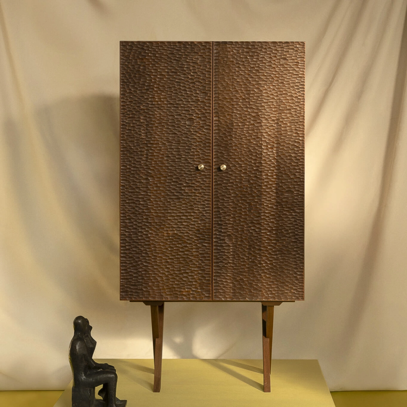 L’armoire Touch est une pièce de rangement au caractère sculptural, pensée comme un dialogue entre matière et sensation. Réalisée en bois massif, elle se distingue par ses façades finement travaillées à la main, dont les reliefs captent la lumière et invitent au geste. Avec Touch, chaque détail est conçu pour apporter de la profondeur visuelle tout en conservant une grande sobriété formelle, permettant à l’armoire de s’intégrer aussi bien dans un intérieur contemporain que plus classique. Éditée par Zanat, cette armoire met en valeur un savoir-faire artisanal d’exception, où la précision du travail manuel donne naissance à des surfaces uniques. L’équilibre entre fonctionnalité et expression artistique fait de Touch un meuble à la fois utile et émotionnel, capable de structurer l’espace sans l’alourdir. Fruit de la collaboration avec Studioilse, cette création reflète l’engagement de Zanat pour un design durable, sensible et intemporel.