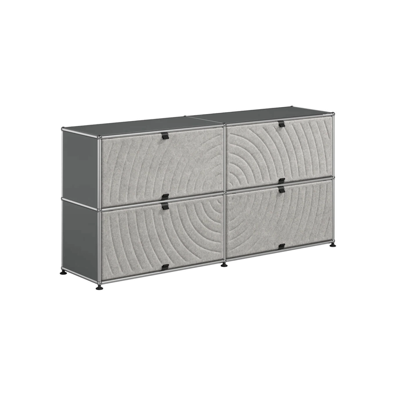 Le meuble M68 Gris Moyen / Soft Panel Gris de USM Haller propose une lecture sobre et élégante du design modulaire suisse, où rigueur architecturale et sens du détail s’expriment avec équilibre. Composé de quatre modules et de quatre Soft Panels à motif de rainures courbes, il structure l’espace avec finesse tout en apportant une dimension visuelle et tactile subtile, parfaitement adaptée aux bureaux, aux espaces collaboratifs, aux lieux d’accueil, aux projets hôteliers ou aux intérieurs résidentiels contemporains. L’association du Gris Moyen et des Soft Panels Gris crée une harmonie douce et intemporelle, favorisant une atmosphère apaisée et cohérente. Conçu par un architecte et un industriel visionnaires et fabriqué en Suisse depuis plus de cinquante ans, le système USM Haller est reconnu internationalement pour la qualité irréprochable de sa fabrication et la justesse de ses lignes. Pensé comme un mobilier évolutif, le M68 accompagne les usages et les projets dans la durée, offrant une esthétique durable, fonctionnelle et résolument contemporaine.