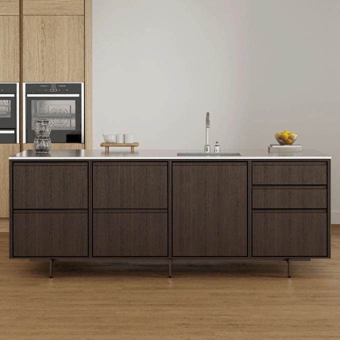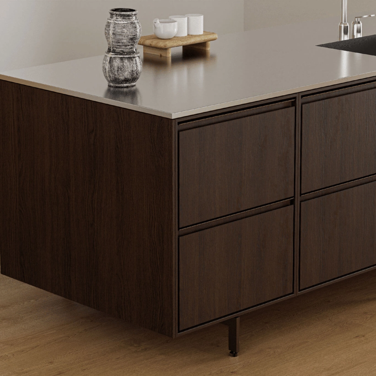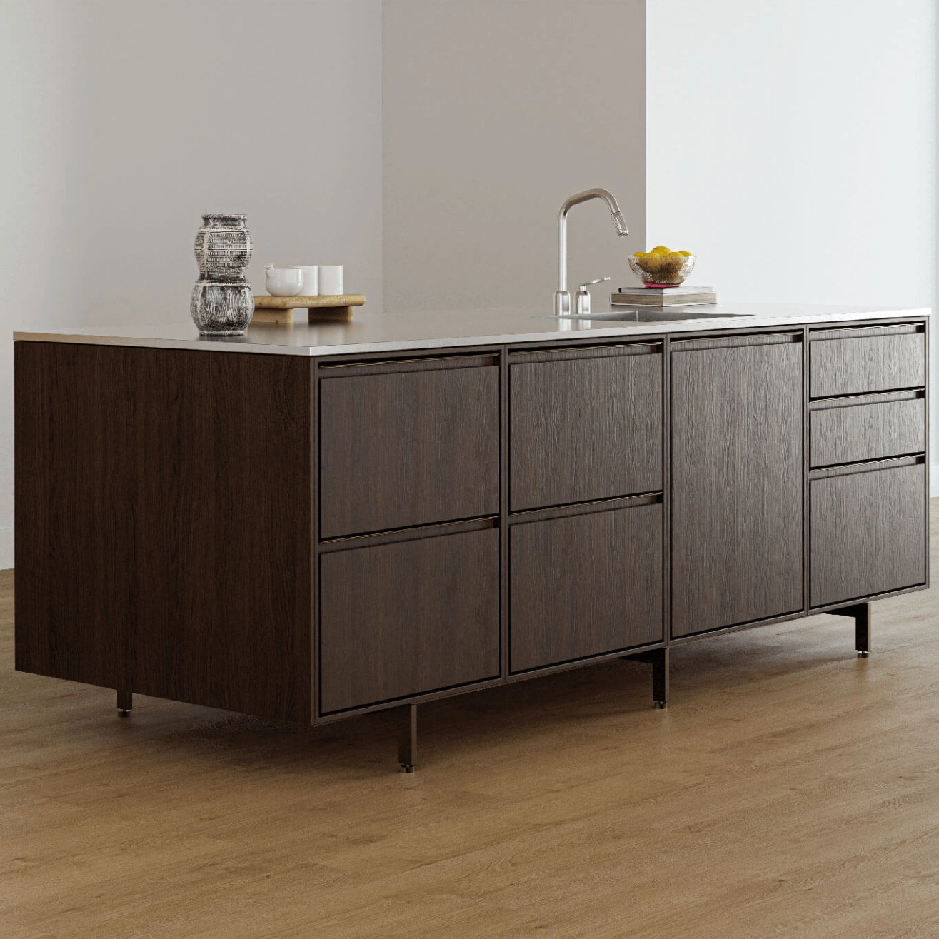 La cuisine V2 de Vipp incarne l’équilibre parfait entre innovation et durabilité, fidèle à l’esprit de la marque depuis 1939. Pensée pour traverser les années sans perdre de sa fonctionnalité ni de son esthétique, chaque élément de cette cuisine a été conçu avec précision, alliant ergonomie et élégance intemporelle. Loin des modes passagères, la V2 se distingue par son design minimaliste et sa robustesse, avec un soin particulier apporté aux matériaux et aux finitions. La V2 est une cuisine modulaire qui offre une grande flexibilité, pouvant s’adapter à différents espaces et styles de vie. Qu’il s’agisse d’un îlot central, d’un îlot avec espace de détente, d’unités murales ou de grandes colonnes de rangement, chaque module est conçu pour optimiser l’usage quotidien tout en maintenant un niveau de qualité irréprochable. Son design sobre et ses lignes épurées permettent à la V2 de s’intégrer harmonieusement dans des intérieurs modernes, tout en offrant un cadre de travail agréable et fonctionnel. Chaque module de la V2 transforme la cuisine en un véritable espace de partage, de convivialité et de créativité. Grâce à ses matériaux durables et à son esthétique raffinée, la V2 est le choix idéal pour ceux qui recherchent une cuisine pratique, modulable et élégante, pensée pour durer toute une vie.