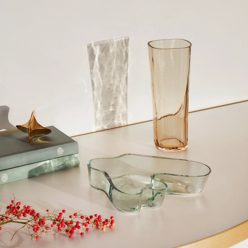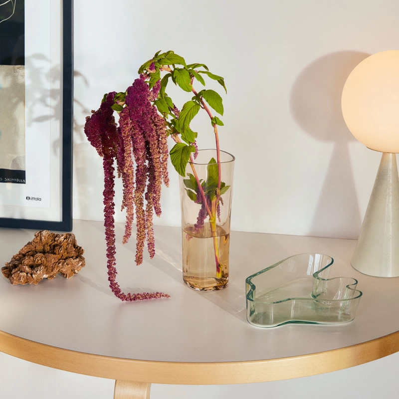 Alvar Aalto est une des figures les plus importantes du design et de l'architecture du 20ème siècle. Il a créé son propre style en s'inspirant de l'homme et de la nature. Aalto pensait que le bon design devait faire partie du quotidien et a créé, dans ce sens, des produits aux multiples utilisations, sensibles, et qui améliorent la vie quotidienne. Il n'a jamais indiqué comment ses objets en verre devaient être utilisés, souhaitant que l'utilisateur décide lui-même de sa fonctionnalité. Les formes ondulantes, fluides et organiques des objets de cette collection rappellent les milliers de lacs qui rythment le paysage finlandais. Les souffleurs de verre du fabricant Iittala réalisent toujours à la main ces vases légendaires à la beauté sereine. Le vase Aalto est disponible en plusieurs hauteurs et se décline en plusieurs couleurs. Depuis sa présentation en 1937 à l'Exposition Universelle de Paris, la collection Aalto est devenue un véritable chef d'œuvre.