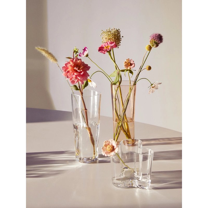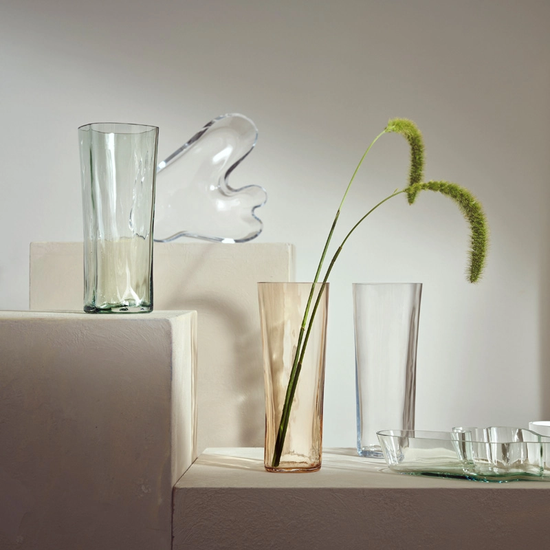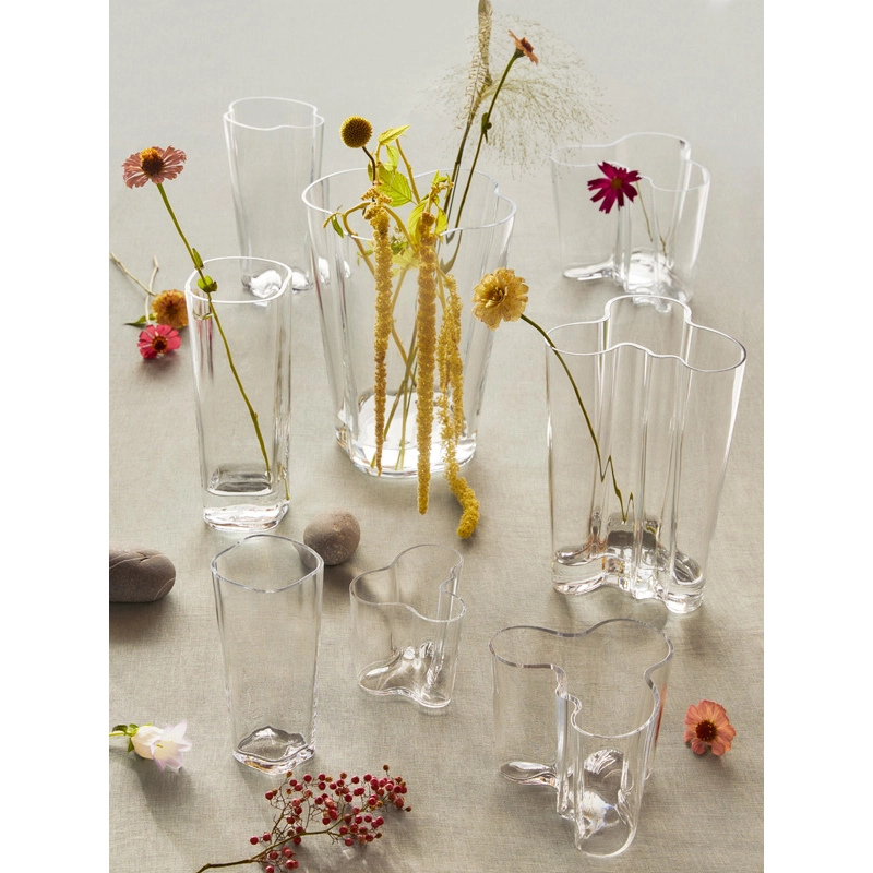 Alvar Aalto est une des figures les plus importantes du design et de l'architecture du 20ème siècle. Il a créé son propre style en s'inspirant de l'homme et de la nature. Aalto pensait que le bon design devait faire partie du quotidien et a créé, dans ce sens, des produits aux multiples utilisations, sensibles, et qui améliorent la vie quotidienne. Il n'a jamais indiqué comment ses objets en verre devaient être utilisés, souhaitant que l'utilisateur décide lui-même de sa fonctionnalité. Les formes ondulantes, fluides et organiques des objets de cette collection rappellent les milliers de lacs qui rythment le paysage finlandais. Les souffleurs de verre du fabricant Iittala réalisent toujours à la main ces vases légendaires à la beauté sereine. Le vase Aalto est disponible en plusieurs hauteurs et se décline en plusieurs couleurs. Depuis sa présentation en 1937 à l'Exposition Universelle de Paris, la collection Aalto est devenue un véritable chef d'œuvre.