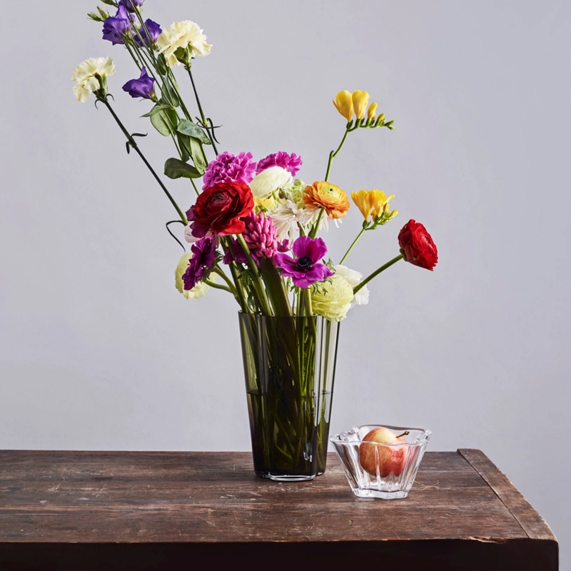 Alvar Aalto est une des figures les plus importantes du design et de l'architecture du 20ème siècle. Il a créé son propre style en s'inspirant de l'homme et de la nature. Aalto pensait que le bon design devait faire partie du quotidien et a créé, dans ce sens, des produits aux multiples utilisations, sensibles, et qui améliorent la vie quotidienne. Il n'a jamais indiqué comment ses objets en verre devaient être utilisés, souhaitant que l'utilisateur décide lui-même de sa fonctionnalité. Les formes ondulantes, fluides et organiques des objets de la collection de vase Aalto rappellent les milliers de lacs qui rythment le paysage finlandais. Les souffleurs de verre du fabricant Iittala réalisent toujours à la main ces vases légendaires à la beauté sereine. Le vase Aalto est disponible en plusieurs hauteurs et se décline en plusieurs couleurs. Depuis sa présentation en 1937 à l'Exposition Universelle de Paris, la collection Aalto est devenue un véritable chef d'œuvre.
