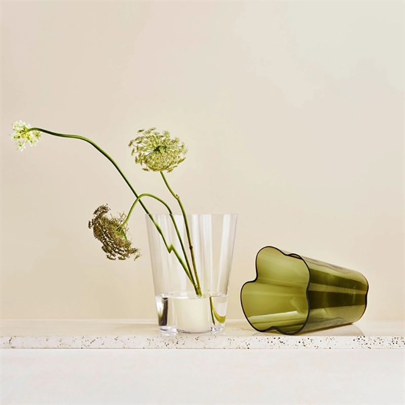 Alvar Aalto est une des figures les plus importantes du design et de l'architecture du 20ème siècle. Il a créé son propre style en s'inspirant de l'homme et de la nature. Aalto pensait que le bon design devait faire partie du quotidien et a créé, dans ce sens, des produits aux multiples utilisations, sensibles, et qui améliorent la vie quotidienne. Il n'a jamais indiqué comment ses objets en verre devaient être utilisés, souhaitant que l'utilisateur décide lui-même de sa fonctionnalité. Les formes ondulantes, fluides et organiques des objets de cette collection rappellent les milliers de lacs qui rythment le paysage finlandais. Les souffleurs de verre du fabricant Iittala réalisent toujours à la main ces vases légendaires à la beauté sereine. Le vase Aalto est disponible en plusieurs hauteurs et se décline en plusieurs couleurs. Depuis sa présentation en 1937 à l'Exposition Universelle de Paris, la collection Aalto est devenue un véritable chef d'œuvre.