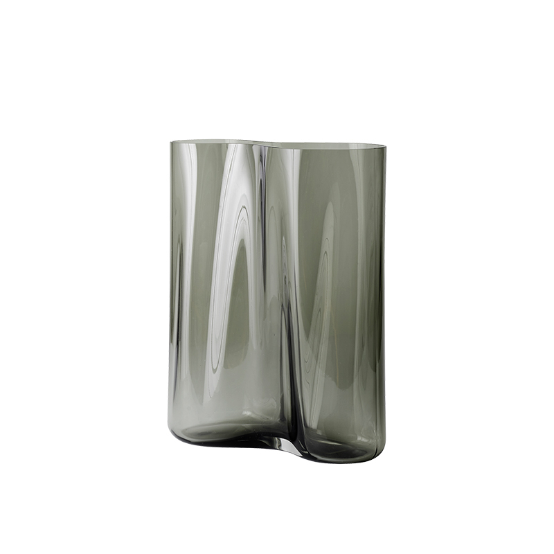 Menu, apporte une touche sculpturale dans l’espace. Tirant son nom du mot latin pour « air » ou « vapeur », le vase à la silhouette asymétrique ondule comme un liquide, apportant ainsi une qualité tactile presque éthérée au verre. Disponible en deux tailles, le