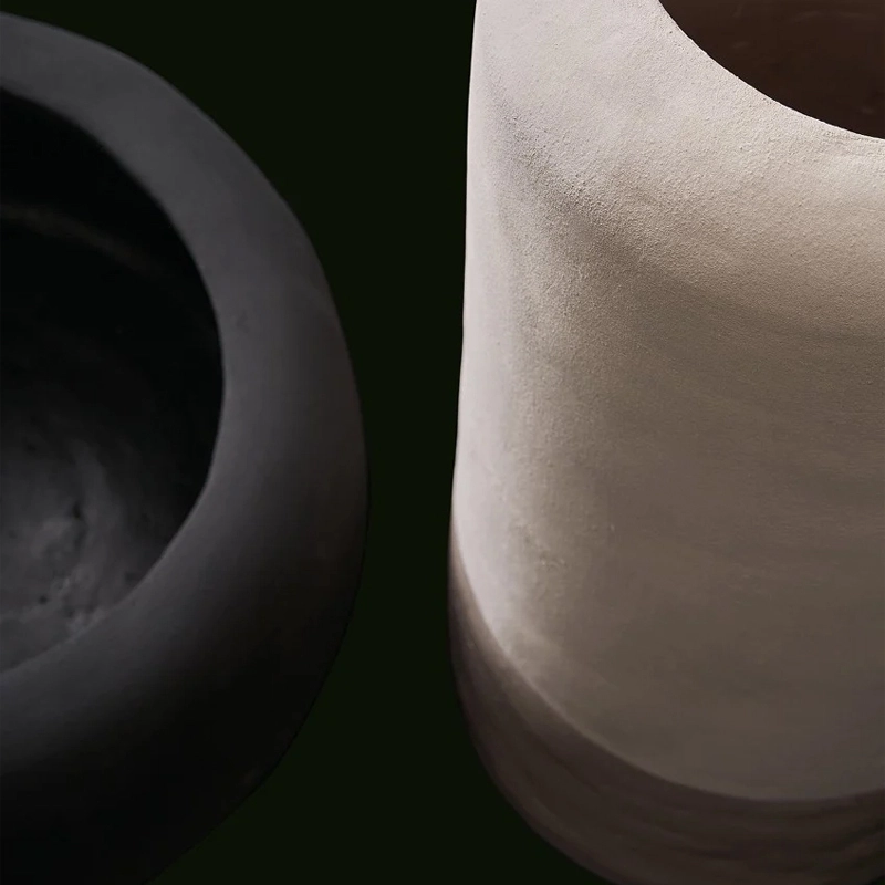 Pour compléter l’espace extérieur, Jean-Marie Massaud a conçu pour Poliform une collection de vases en céramique qui, dans la combinaison entre matière pure et matière émaillée, rappelle les tables basses Crew. Disponibles en trois dimensions, les vases sont conçus pour enrichir chaque environnement extérieur, en s’harmonisant avec la nature environnante.