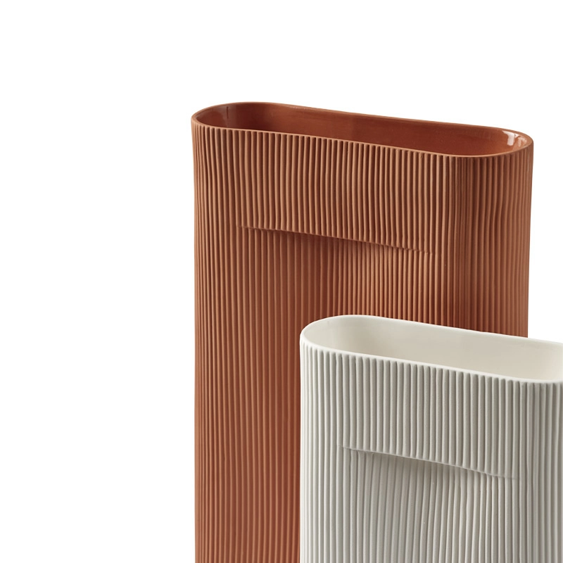 Ridge a été inspiré par une porte parisienne découverte par le studio Kaksikko, lors d'un voyage qui avait pour but d’inspirer la création d’un nouveau vase. Fait à la main en terre cuite, le vase