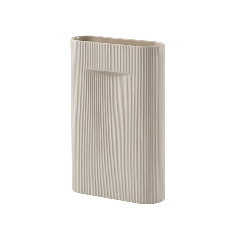 Ridge lui attribuent une fonctionnalité supplémentaire, permettant de dresser les fleurs tout en facilitant la prise en main pour déplacer le vase. Les deux tailles du vase