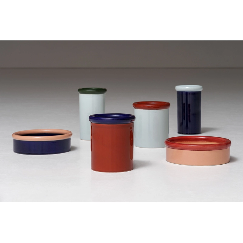 Dessinée par Julien Renault pour la marque Nine, Rod est une collection de récipients en céramique fabriqués et peints à la main. Cette série s’inspire des techniques traditionnelles de poterie en colombins. La famille Rod comprend une vase, un pot et une coupe, chacun disponible dans deux combinaisons de couleurs. Ces pièces colorées peuvent être utilisées seules pour accueillir des fleurs, des ustensiles de cuisine ou des fruits, mais elles peuvent aussi être associées les unes avec les autres pour créer un ensemble décoratif. La réalisation à la main apporte un caractère unique à chaque pièce de la collection Rod.