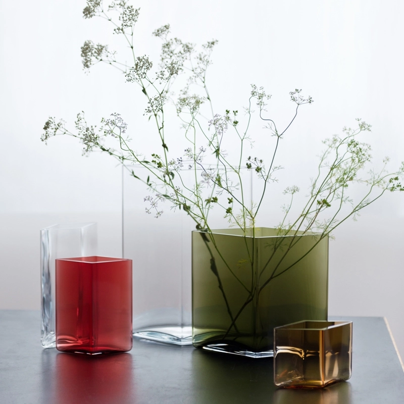 Dessinée par Ronan et Erwan Bouroullec, Ruutu est une collection de vases éditée par la marque finlandaise Iittala. Mélange entre tradition et modernité, ces vases se caractérisent par un travail particulier du verre soufflé. Les lignes sont simples, fluides, et rendent la collection intemporelle. Les designers ont choisi des teintes chaleureuses et enveloppantes, qui s'associent très bien les unes avec les autres. Trompeurs, ces vases qui apparaissent comme des carrés selon le point de vue, sont en fait en forme de losange, formant ainsi une silhouette moderne pour des compositions florales originales. La collection Ruutu, qui signifie « diamant » et « carré » en finnois, comprend 10 vases disponibles en cinq tailles et sept couleurs différentes pour s'adapter à vos envies, sur la table basse du salon ou dans la salle à manger. Lorsqu'on associe plusieurs modèles, ils forment une composition homogène où la nature du verre se révèle : à la fois forte et délicate. Chaque vase est telle une petite œuvre d'art, nécessitant le travail et les compétences de sept artisans pendant 24 heures.