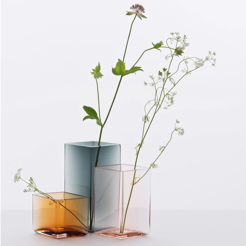 Dessinée par Ronan et Erwan Bouroullec, Ruutu est une collection de vases éditée par la marque finlandaise Iittala. Mélange entre tradition et modernité, ces vases se caractérisent par un travail particulier du verre soufflé. Les lignes sont simples, fluides, et rendent la collection intemporelle. Les designers ont choisi des teintes chaleureuses et enveloppantes, qui s'associent très bien les unes avec les autres. Trompeurs, ces vases qui apparaissent comme des carrés selon le point de vue, sont en fait en forme de losange, formant ainsi une silhouette moderne pour des compositions florales originales. La collection Ruutu, qui signifie « diamant » et « carré » en finnois, comprend 10 vases disponibles en cinq tailles et sept couleurs différentes pour s'adapter à vos envies, sur la table basse du salon ou dans la salle à manger. Lorsqu'on associe plusieurs modèles, ils forment une composition homogène où la nature du verre se révèle : à la fois forte et délicate. Chaque vase est telle une petite œuvre d'art, nécessitant le travail et les compétences de sept artisans pendant 24 heures.