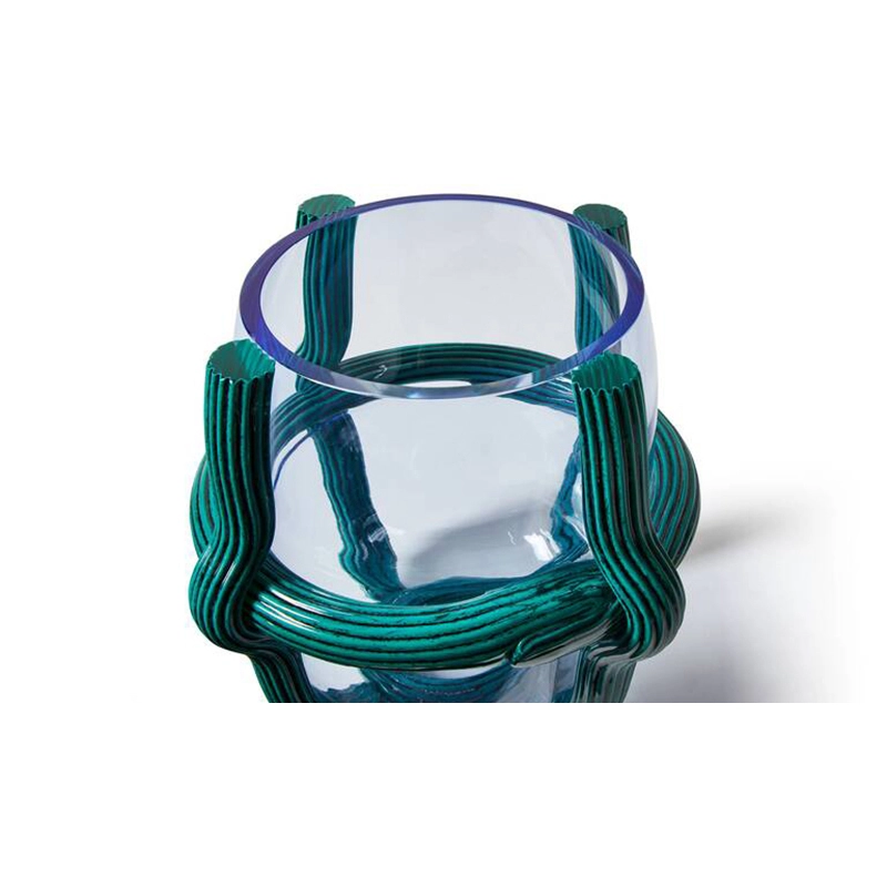 collection de vases Sestiere allie harmonieusement les deux langages esthétiques du verre et du cordage, créant des pièces uniques d'une grande beauté, témoignant de l'habileté et de la passion des artisans de Murano.