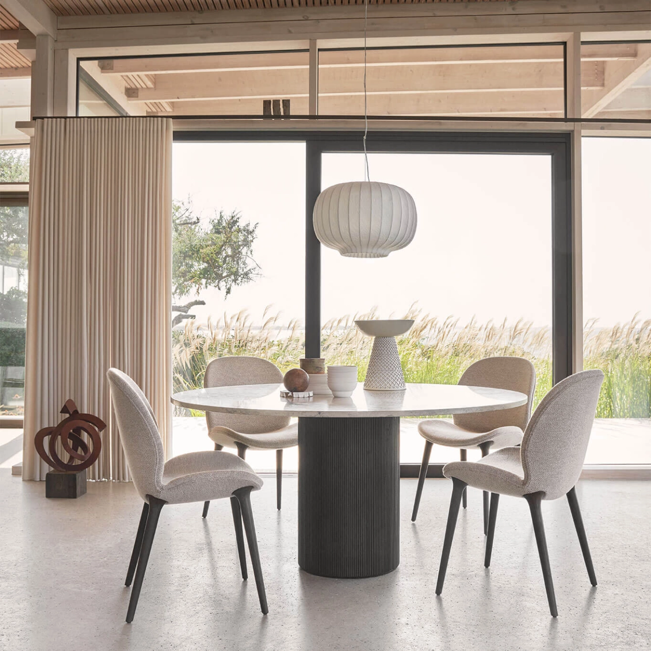 La chaise Lodge Vipp est idéale pour la salle à manger. Cette chaise est dotée d'une coque rembourrée et de pieds en chêne massif. La chaise Lodge Vipp est présentée avec divers revêtement avec des pieds en chêne clair ou foncé. La gamme Lodge est une collection de meubles au rembourrage doux, composée d’une chaise à manger, d’une chaise lounge et d’un repose-pied. La collection Lodge a été créée à l'occasion de l'ouverture du Vipp Lodge, la quatrième chambre d’hôtel de la gamme de destinations hôtelières de la marque Vipp.