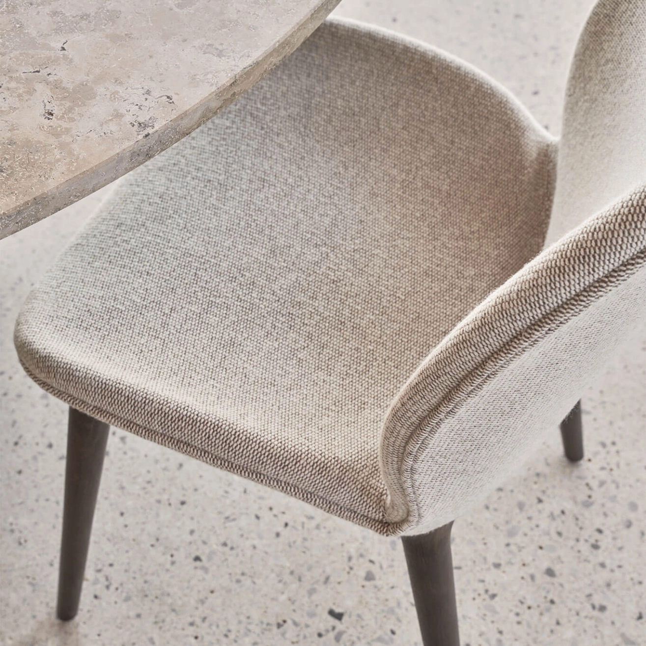 Tissu Brook Beige/Chestnut, métal, mousse haute résilience, chêne massif foncé laqué