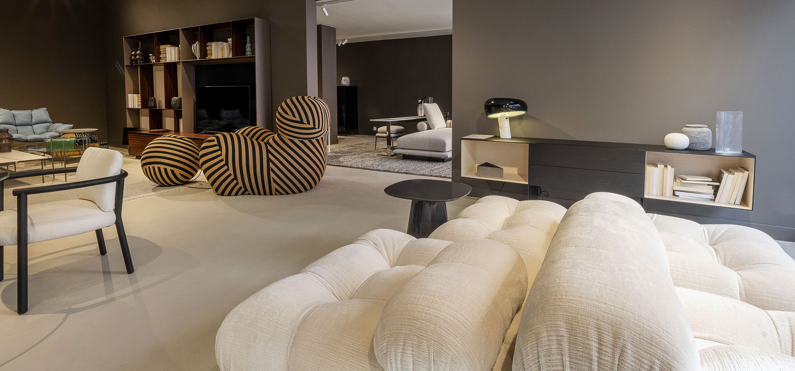 Un showroom de 415 m² structuré autour de deux espaces distincts: Le premier, un espace multimarque, met en lumière certains des plus grands noms du design, tels que Meridiani, Edra, Living Divani, Baxter, Riva, Tacchini, Acerbis, Carl Hansen, Lema, Noom Home, Flos, Louis Poulsen, CTO Lighting et CC-Tapis. Le second, d’une superficie de 165 m², est quant à lui exclusivement dédié à B&B Italia, concrétisant un partenariat de plus de 30 ans entre Silvera et la prestigieuse marque italienne.